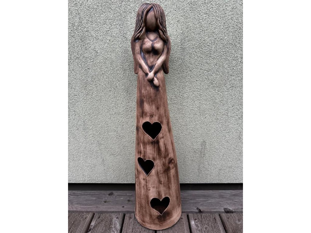 Velká dekorační figura vysokého anděla z keramiky na svíčku vhodná do interiéru nebo exteriéru. Zasněný anděl je krásná dekorace, která vykouzlí pohodovou atmosféru a skvěle podpoří teplo rodinného krbu.
