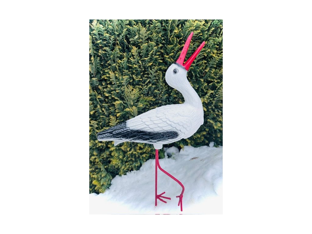 Originální zahradní dekorace čápa odpovídající realitě díky velmi kvalitnímu a detailnímu zpracování anatomických rysů.