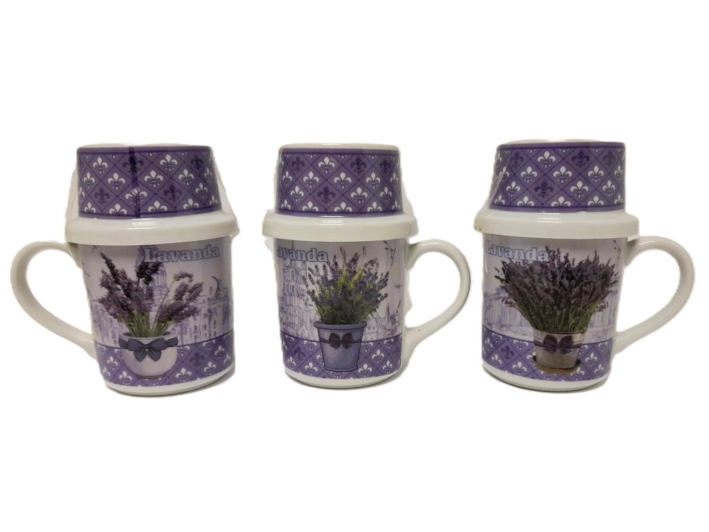 Romantická dárková sada Lavanda - hrnek s talířkem a lžičkou. Výborný tip na dárek.