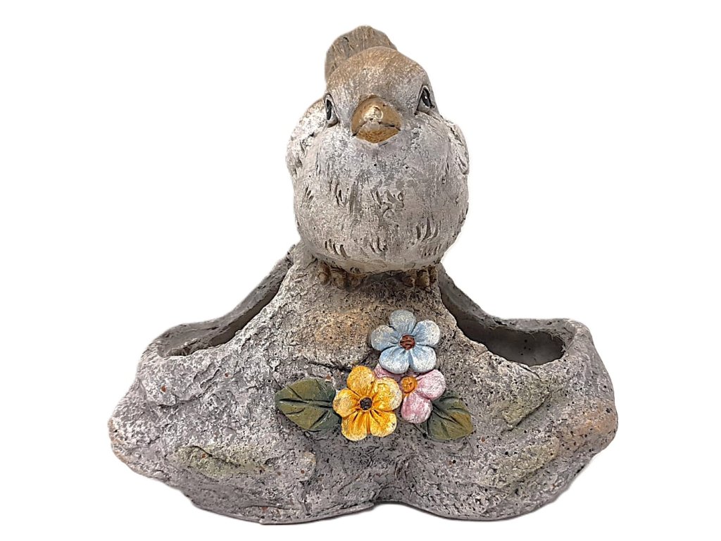 Obal s ptáček a dekorací květin na dva květináče