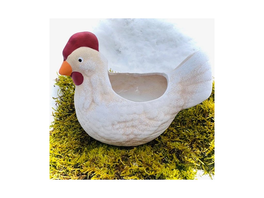 Obal na květináč keramická slepice je půvabnou jarní dekorací, která se hodí jak do interiéru, tak na kryté venkovní prostory. Díky ručnímu malování a patinovanému povrchu působí přirozeně a vkusně.