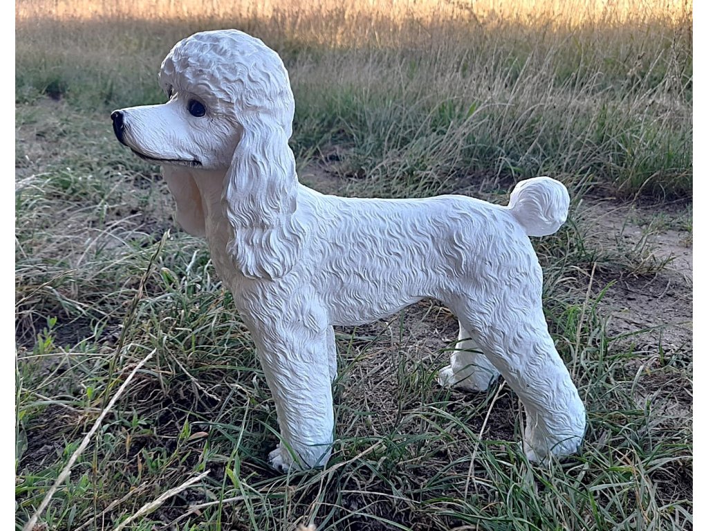 Velmi pěkná dekorační figura psa Pudla odpovídající realitě díky velmi kvalitnímu a detailnímu zpracování anatomických rysů.