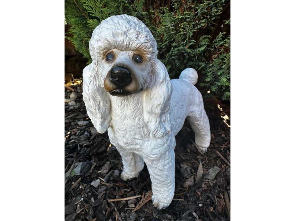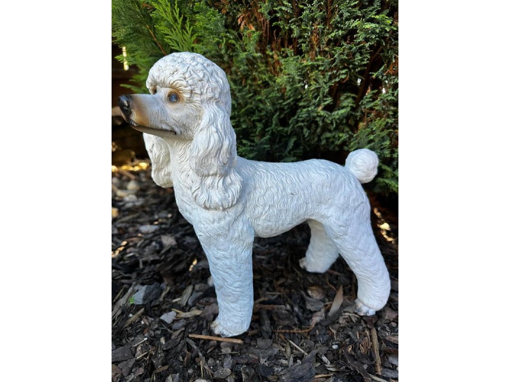 Velmi pěkná dekorační figura psa Pudla odpovídající realitě díky velmi kvalitnímu a detailnímu zpracování anatomických rysů.