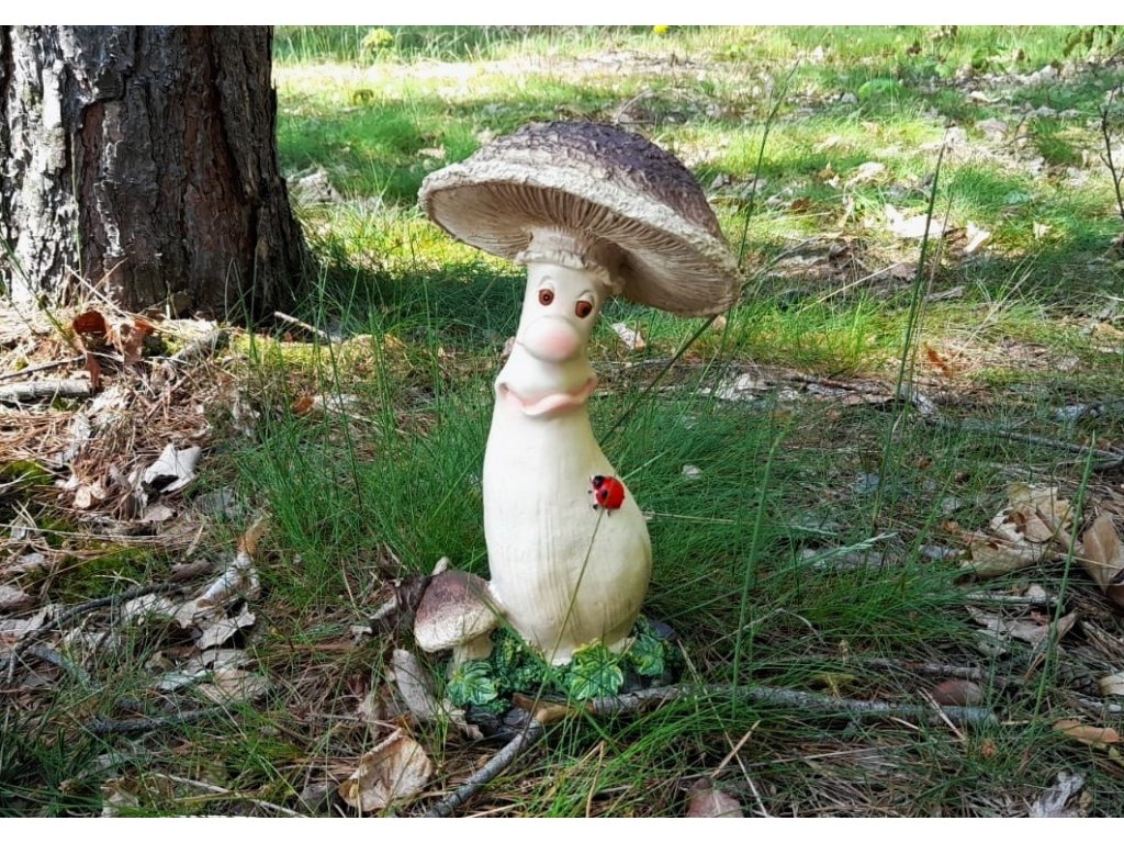 Pohádková houba s beruškou bude ozdobou Vaší zahrádky.