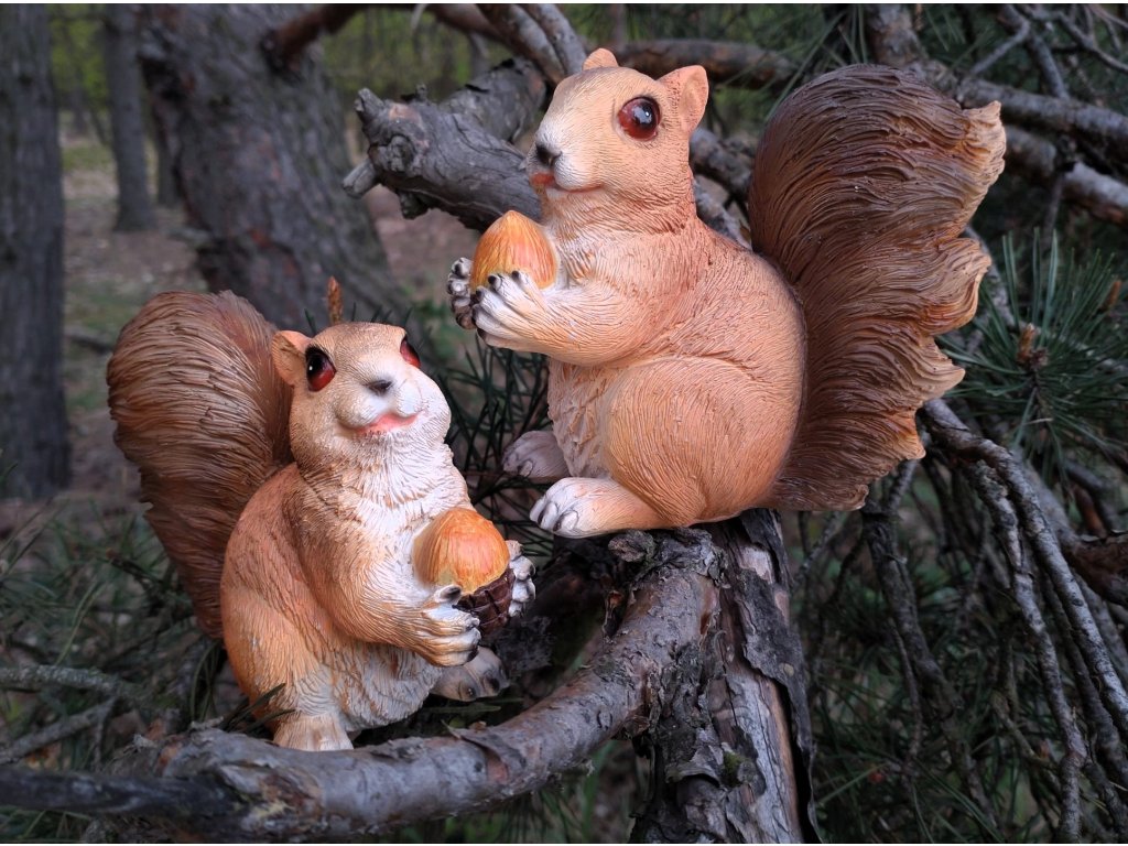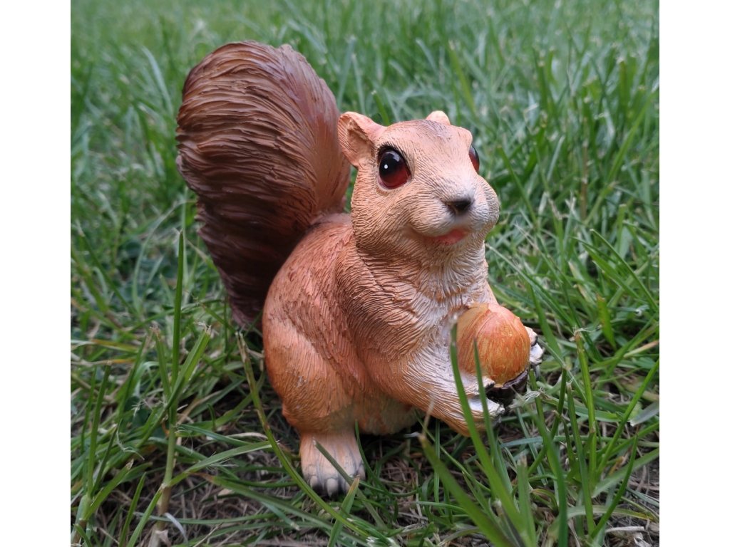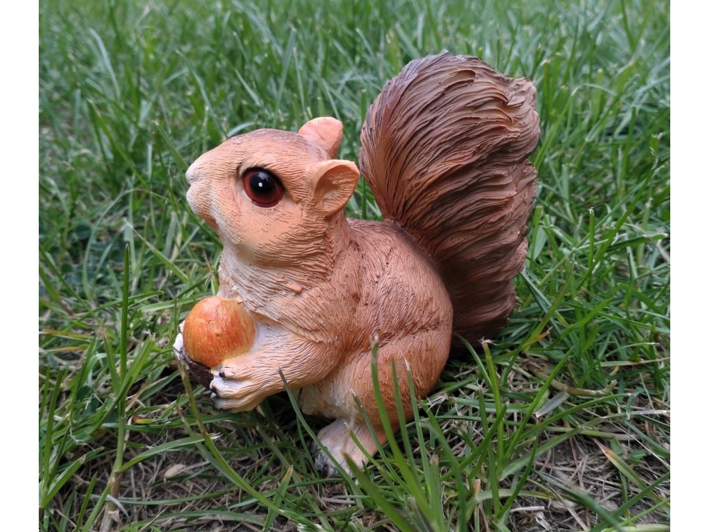Vtipná zahradní figura veverky odpovídající realitě díky velmi kvalitnímu a detailnímu zpracování anatomických rysů.
