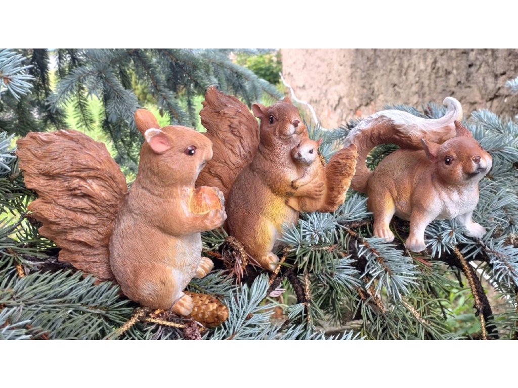 Vtipná zahradní figura veverky.