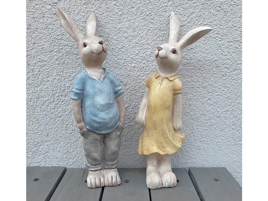 Zahradní dekorace zajíce nebo zaječice v šatech, 2 druhy